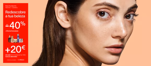 Promoção válida de 27 de dezembro de 2025 a 28 fevereiro de 2026, apenas nos produtos assinalados em loja. Não acumulável com outras promoções ou abate de pontos. Exclui aquisição de serviços ou cheques-oferta. Chanel com desconto não superior a 20%. Não se trocam produtos adquiridos em promoção. Os produtos em PROMOÇÃO não emitem Vale de Loja. Promoção válida apenas para clientes inscritos no programa de fidelização Like Me ou na adesão ao mesmo.
